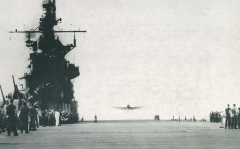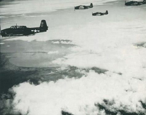 1945年1月「感恩行動」:美國海軍航空母艦編隊直接駛入南中國海,「由台灣掃日軍嘅船,咩船都炸,掃到越南金蘭灣一帶。當時整個海域,一見到日軍貨輪、運輸船、郵輪、軍艦,全部盡量都炸」,鄺智文解釋。1月15-16日,編隊派出470架次飛機空襲香港,涉及10艘航空母艦。行動中兩架復仇者轟炸機在大潭谷上空相撞墜毀,機上6名成員中僅一人生還但最終在日軍戰俘營死去。