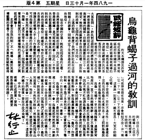 1958年,18歲的林行止第一次嘗試從汕頭經澳門偷渡來港,卻被水警截獲。令他終生難忘的是,當年水警竟然請他們「坐低飲啖茶、食個包」——那是他第一次品嚐香港最地道的菠蘿包。事隔半世紀,他在專欄中仍念念不忘這個菠蘿包,說最令他回味的是當中那份人情味。