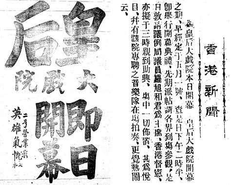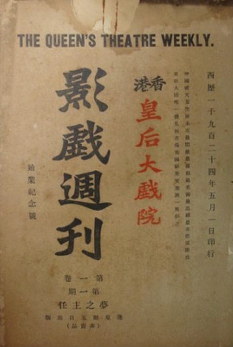 皇后戲院的故事,要從1907年說起。那年12月5日,中環皇后大道中31號,第一家由香港華人開設的電影院「香港影畫戲院」開幕,業主是李璋和李琪。在此之前,香港只有臨時放映場地,沒有固定的電影院。